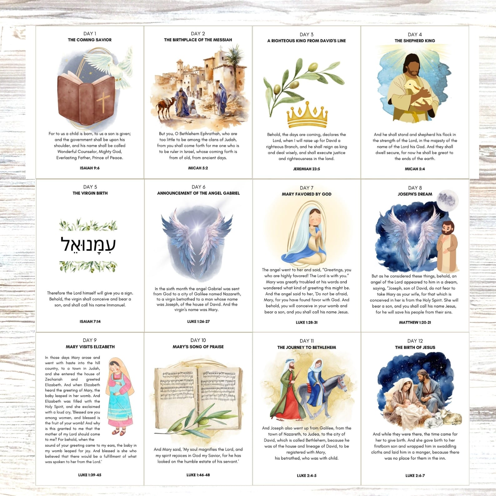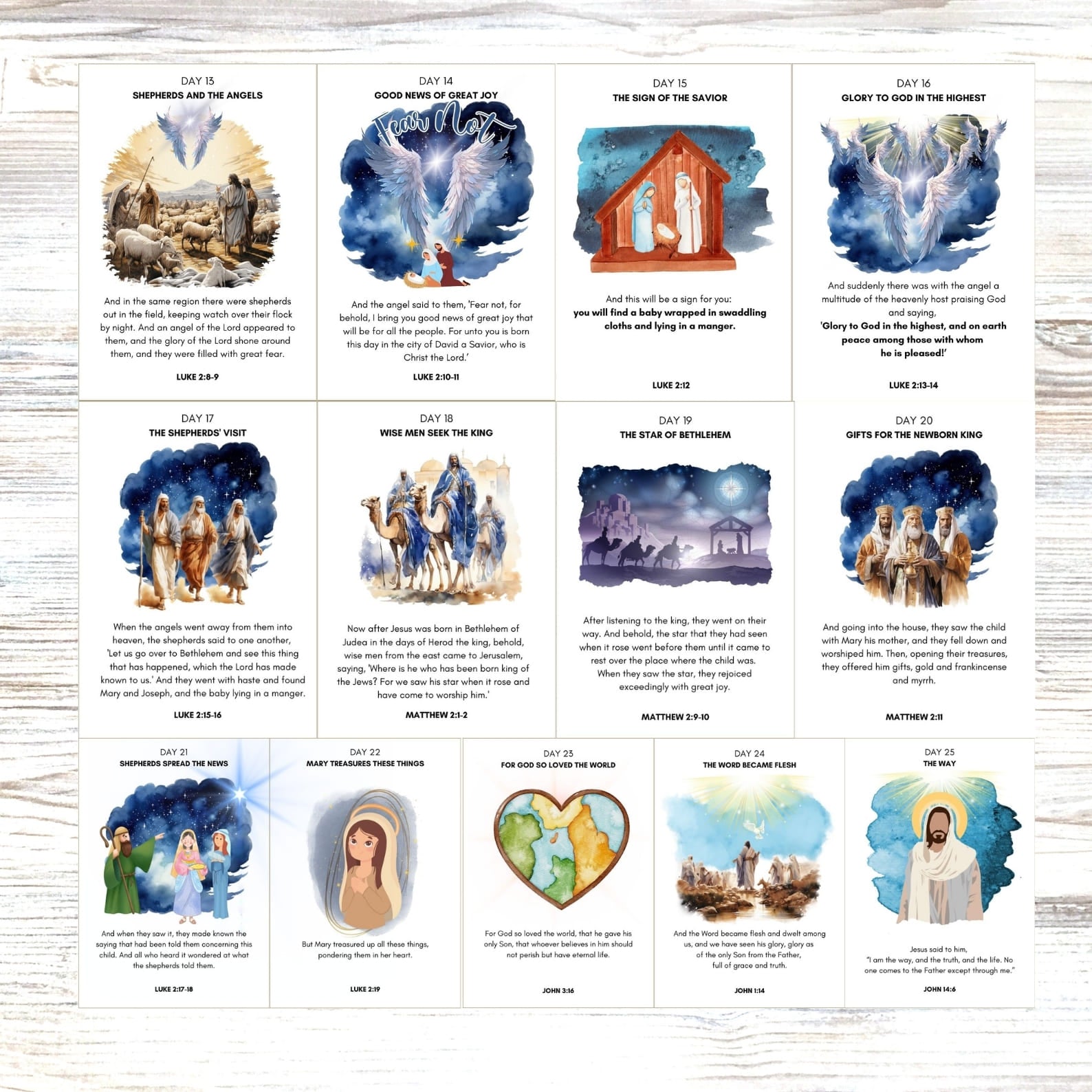 - 25 Scripture-based Nativity Cards (Days 1–25)
