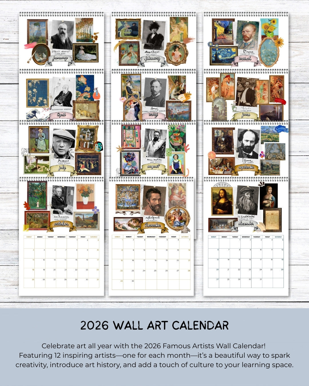 - 🖼️ 2026 Wall Art Calendar – A monthly wall calendar featuring famous paintings by great artists