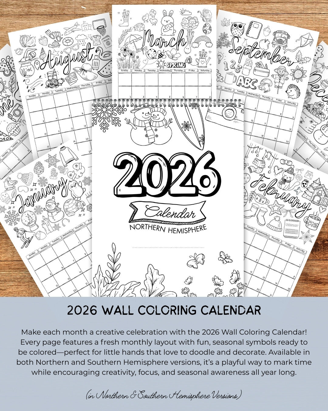 - 🖍️ 2026 Wall Coloring Calendar – A creative, child-friendly version for kids to color month by month