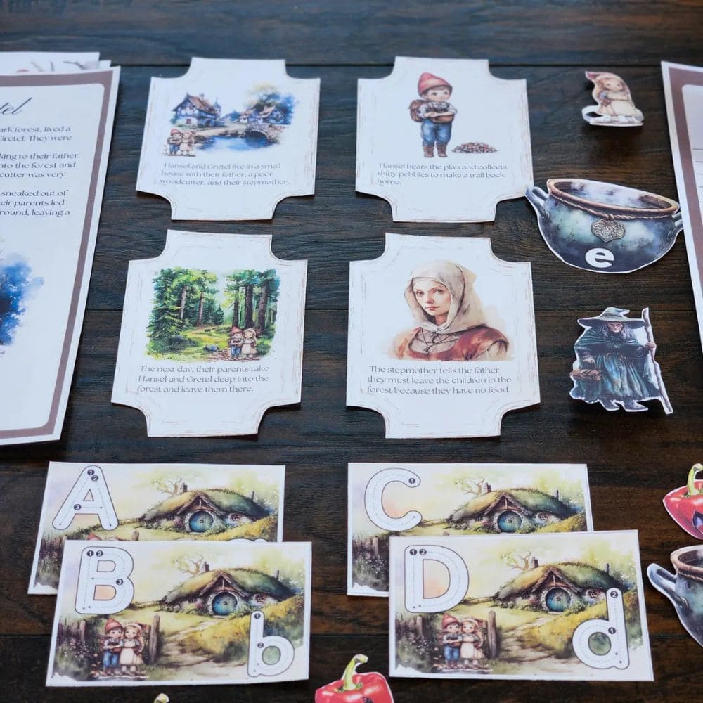 Sequence Cards: Help children understand the flow of the story with beautifully illustrated sequence cards. These cards guide kids through the key events of Hansel and Gretel's adventure, enhancing their comprehension and storytelling skills.