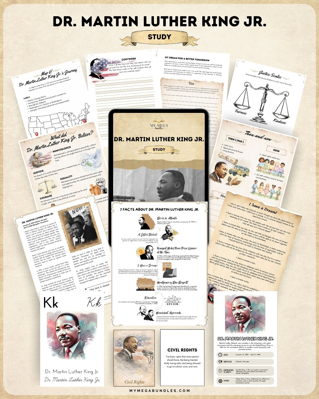 - Biography Page, Flash Card, and Info Card – Child-friendly introduction to MLK’s life.