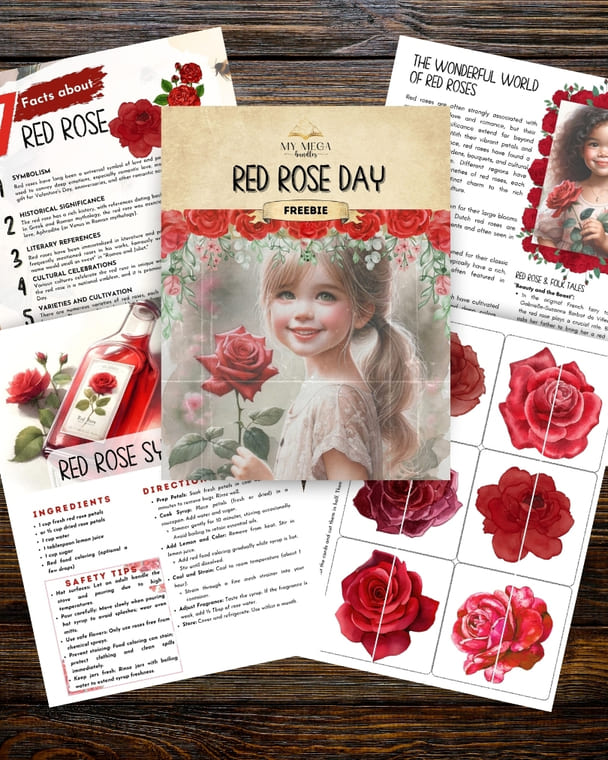 Perfect for Red Rose Day celebrations at home, in the classroom, or as part of a homeschool nature study, this printable pack offers a fun and memorable way for children to explore the world of roses.